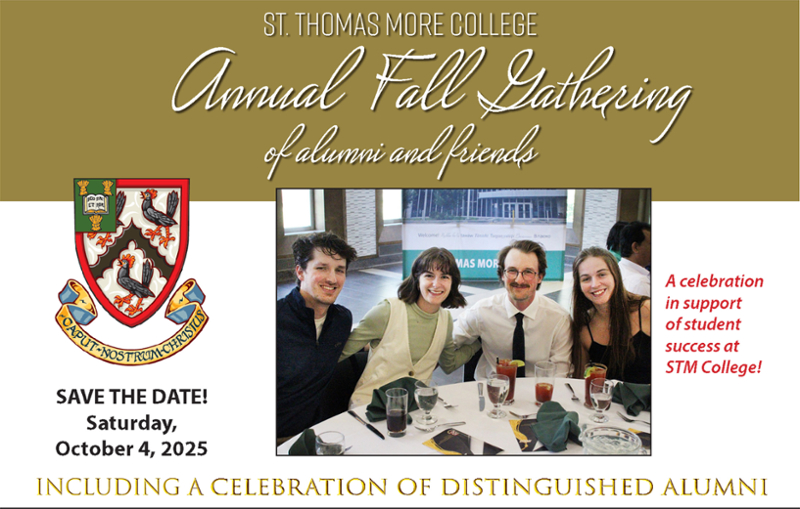 On Saturday, October 4, 2025, St. Thomas More College will celebrate the Annual Fall Gathering of Alumni and Friends, the College's premier alumni event.