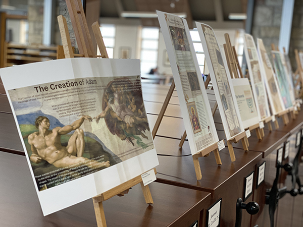 The Religious Studies 112 students spent the term working with upper year research mentors, developing original questions about the material aspects of religion. Their displays included infographics and artwork created as part of their education in knowledge creation and research dissemination.