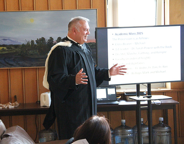 By Paul SinkewiczThe beginning of the academic year finds us in a frightened and fragmented world, said the Most Rev. Mark Hagemoen, Bishop of the Roman Catholic Diocese of Saskatoon. These remarks set the context for his homily during the 2025 Academic Mass held at St. Thomas More College on Wednesday, Sept. 17.