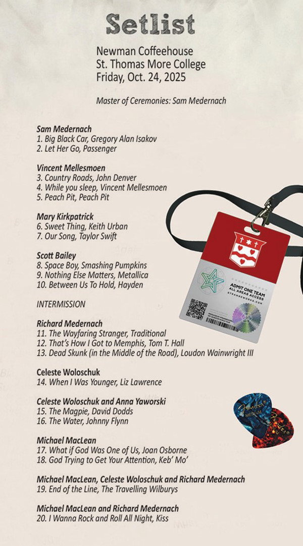 Those are the staples that are always on the menu when the Newman Centre mounts a Coffeehouse, and there were heaping helpings of all three available on Oct. 24 when eight gifted entertainers took the stage in front of a roomful of friends.