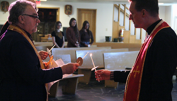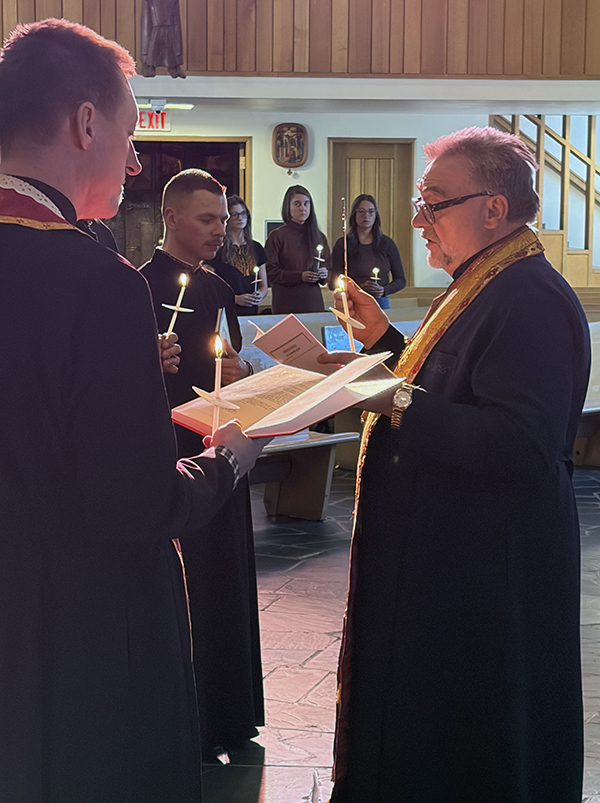 The service was overseen by Fr. Andre Lalach, STM Campus Minister and Ukrainian Catholic priest of the Dormition Parish in Saskatoon, and the Very Rev. Archpriest Taras Makowsky, from Holy Trinity Cathedral in Saskatoon of the Ukrainian Orthodox Church of Canada, with assistance from Sereda, who is seminary student in Saskatoon.