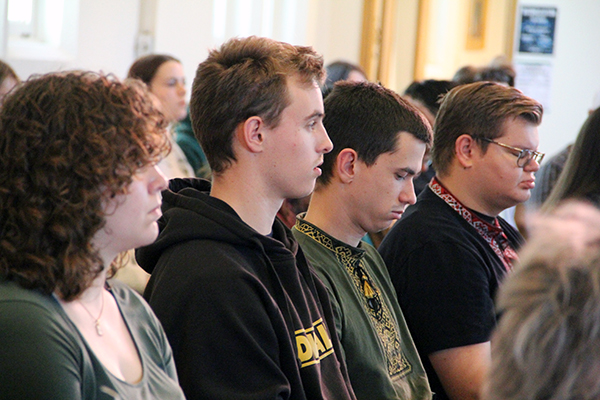 The vigil was attended by students, faculty and staff of STM College, as well as special guests. It included prayers and the lighting of commemorative candles, as well as the sharing of memorial bread from traditional Ukrainian round loaves.