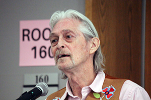 “She would tell us stories about her Mooshum (grandfather),” he told the audience gathered in the STM cafeteria. “Her Mooshum was the one that wandered the plains, from Winnipeg to here, and led a life that we don't understand. It was their life, and we can only enjoy it through the stories that people like my mother passed on.”